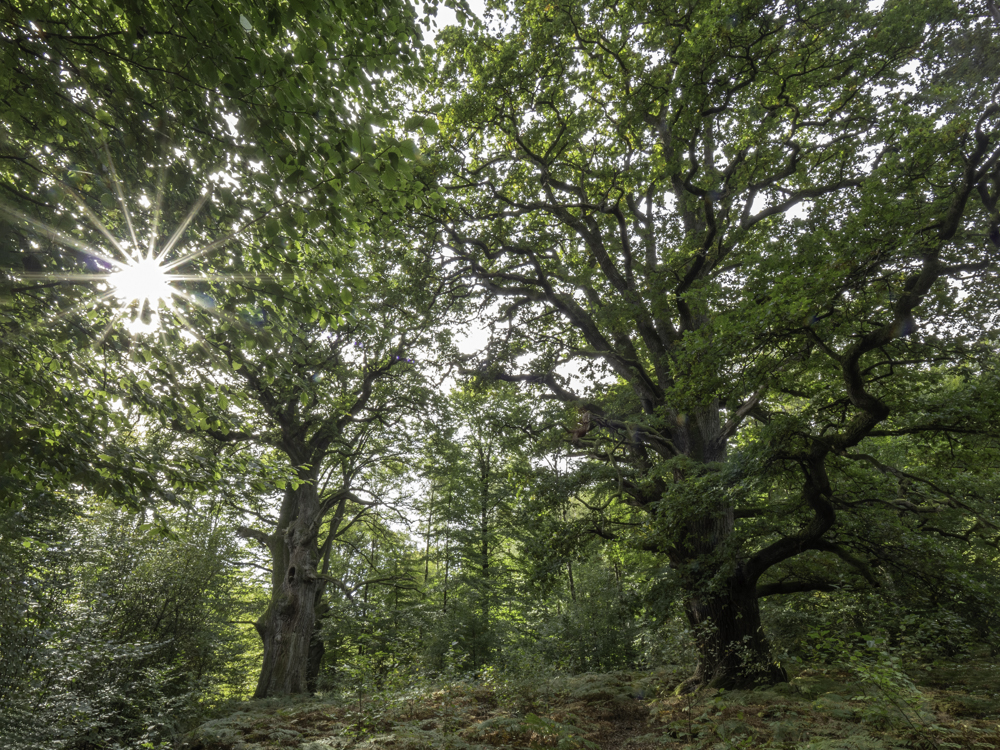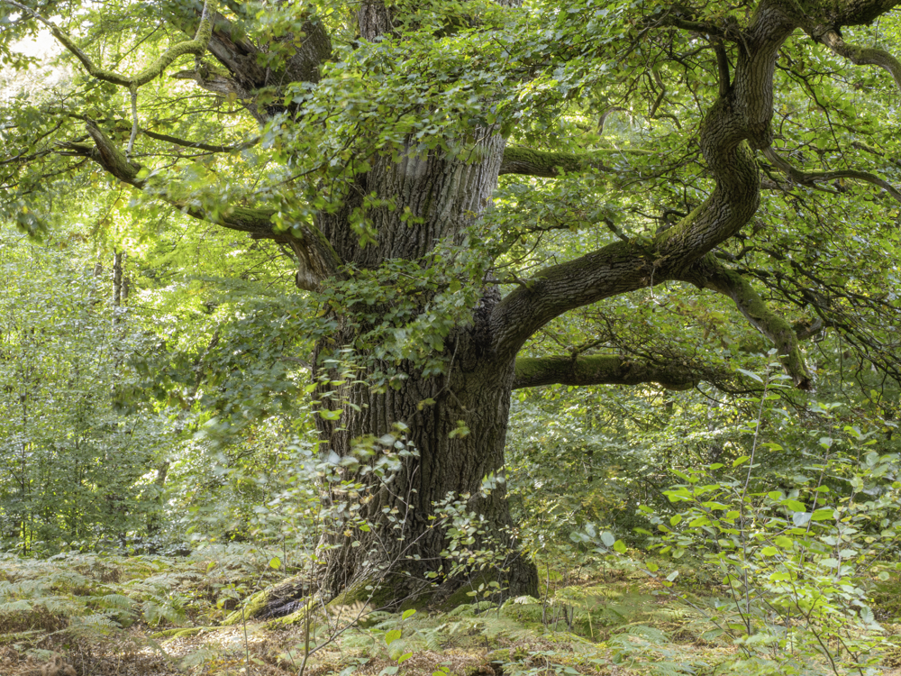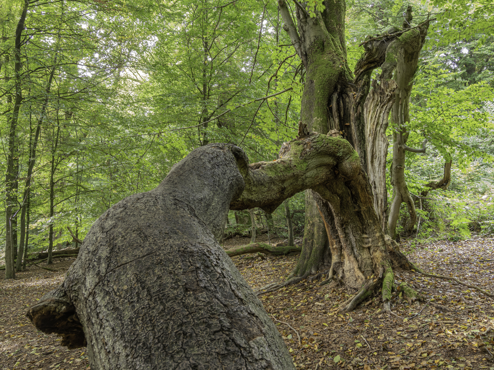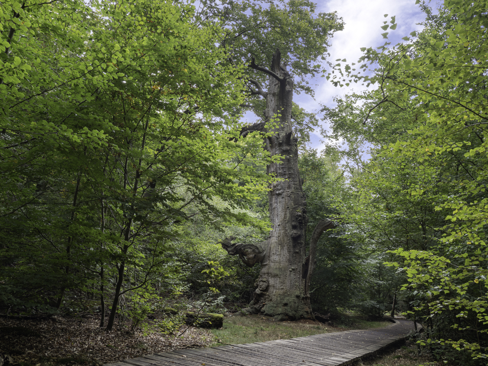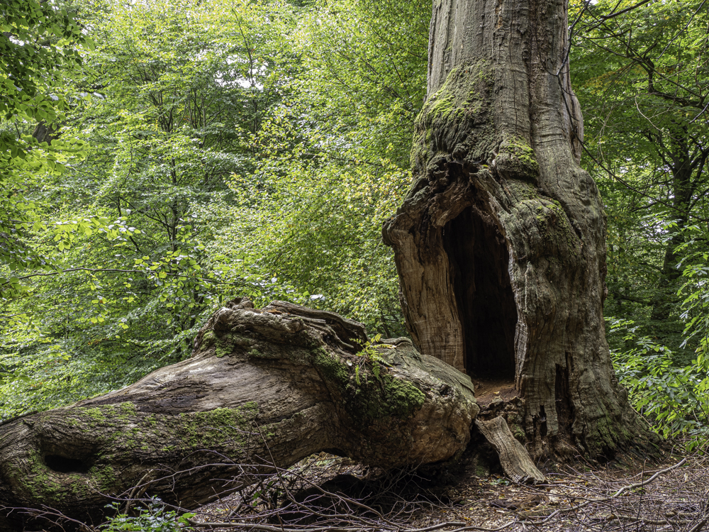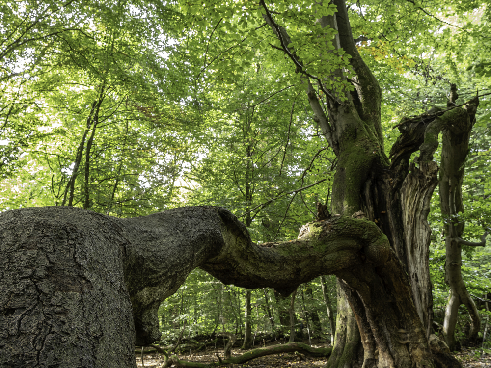 Im Urwald Sababurg sind knorrige, alte Hute-Eichen, meterhoher Adlerfarn und mystische Gebilde aus Totholz zu bewundern. Der Urwald Sababurg das älteste Schutzgebiet Hessens steht seit 1907 unter Naturschutz. Er ist ursprünglich ein durch Menschen geschaffener Wald, der für die Hute, die Waldweide von Sauen, angelegt wurde. Diese alten Hute-Eichen machen heute den besonderen Reiz des Reinhardswalds aus.