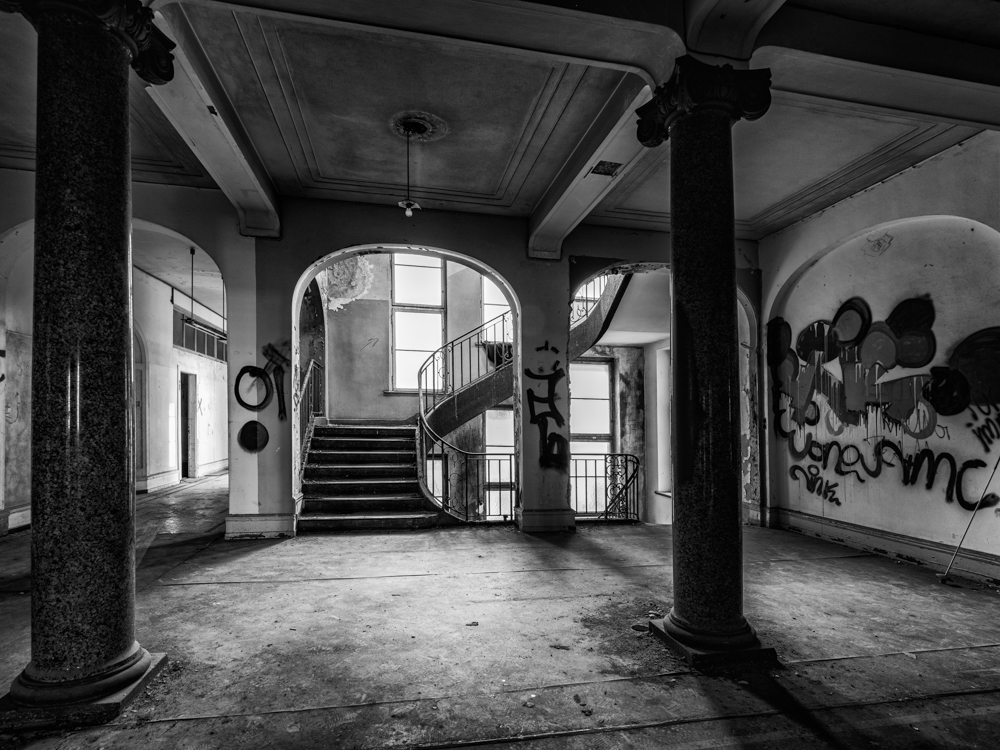 Mitten in Frankfurt, nahe dem Hauptbahnhof, liegt das ehemalige Polizeipräsidium von Frankfurt. Erbaut 1914 war es bis 2002 in Betrieb. Danach zogen Künstler ein und es wurden dort auch Partys gefeiert.Jetzt dient es nur noch als Lost Place für Fotografen.